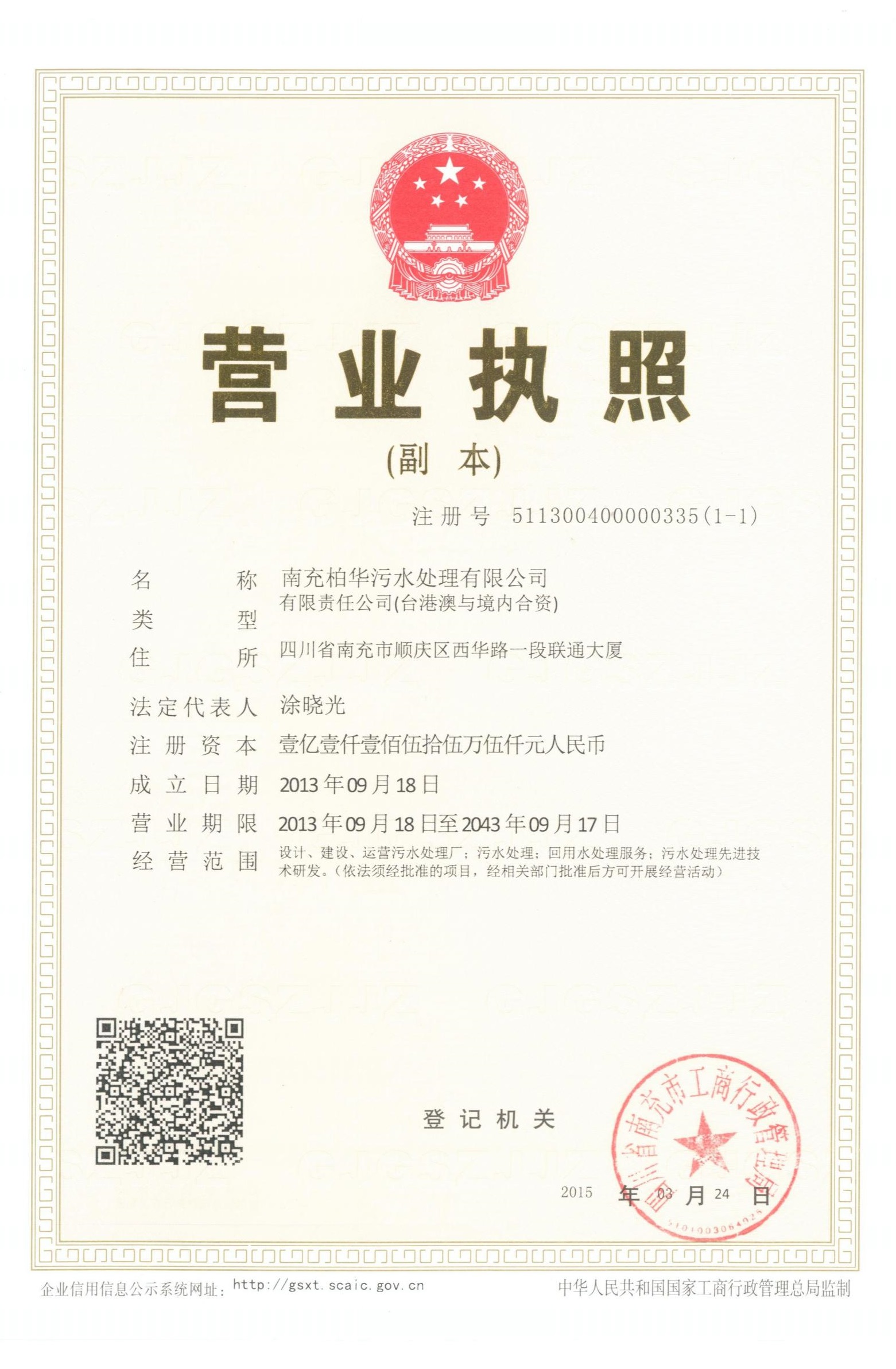 南充柏华污水处理有限公司由ATY.COM爱体育(中国大陆)科技公司与柏中环境科技(上海)有限公司共同设立,注册资本1.12亿元,其中ATY.COM爱体育(中国大陆)科技公司持股30%。经营范围包括设计、建设、运营污水处理厂,污水处理,回用水处理服务,污水处理先进技术研发等业务。