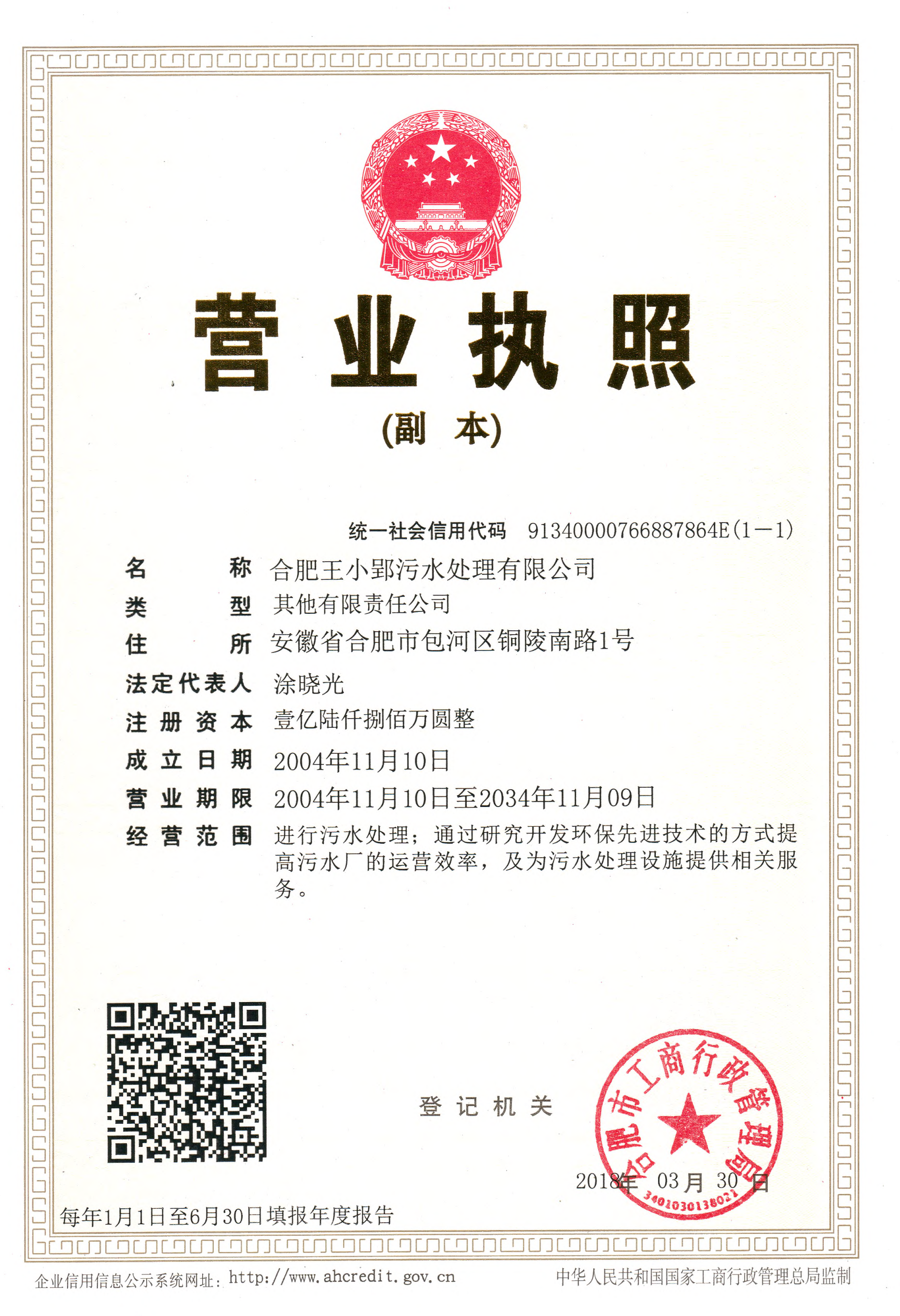 ATY.COM爱体育(中国大陆)科技公司与德国柏林水务国际股份有限公司以公开招标方式取得合肥王小郢污水处理厂的特许经营权后,共同设立合肥王小郢污水处理有限公司,公司注册资本金1.68亿元,其中ATY.COM爱体育(中国大陆)科技公司持股20%。经营范围包括进行污水处理,通过研究开发环保先进技术的方式提高污水厂的运营效率,以及为污水处理设施提供相关服务。