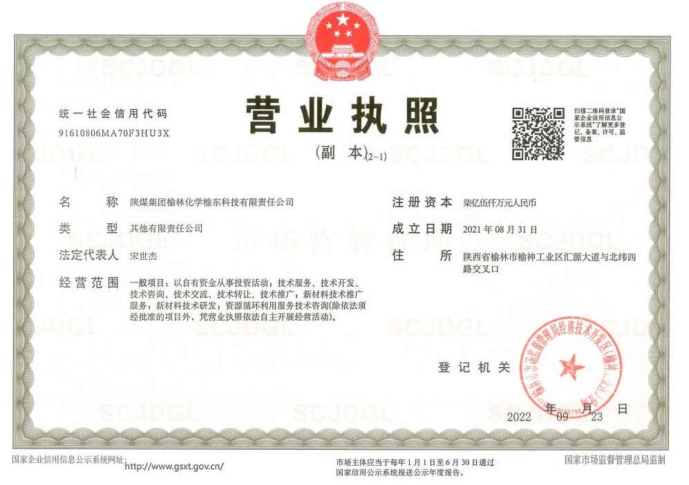 陕煤集团榆林化学榆东科技有限责任公司由ATY.COM爱体育(中国大陆)科技公司与陕煤集团榆林化学有限责任公司共同设立,注册资本金7.5亿元,其中ATY.COM爱体育(中国大陆)科技公司持股20%。经营范围包括以自有资金从事投资活动,技术服务、技术开发、技术咨询、技术交流、技术转让、技术推广,新材料技术推广服务,新材料技术研发,资源循环利用服务技术咨询等业务。
