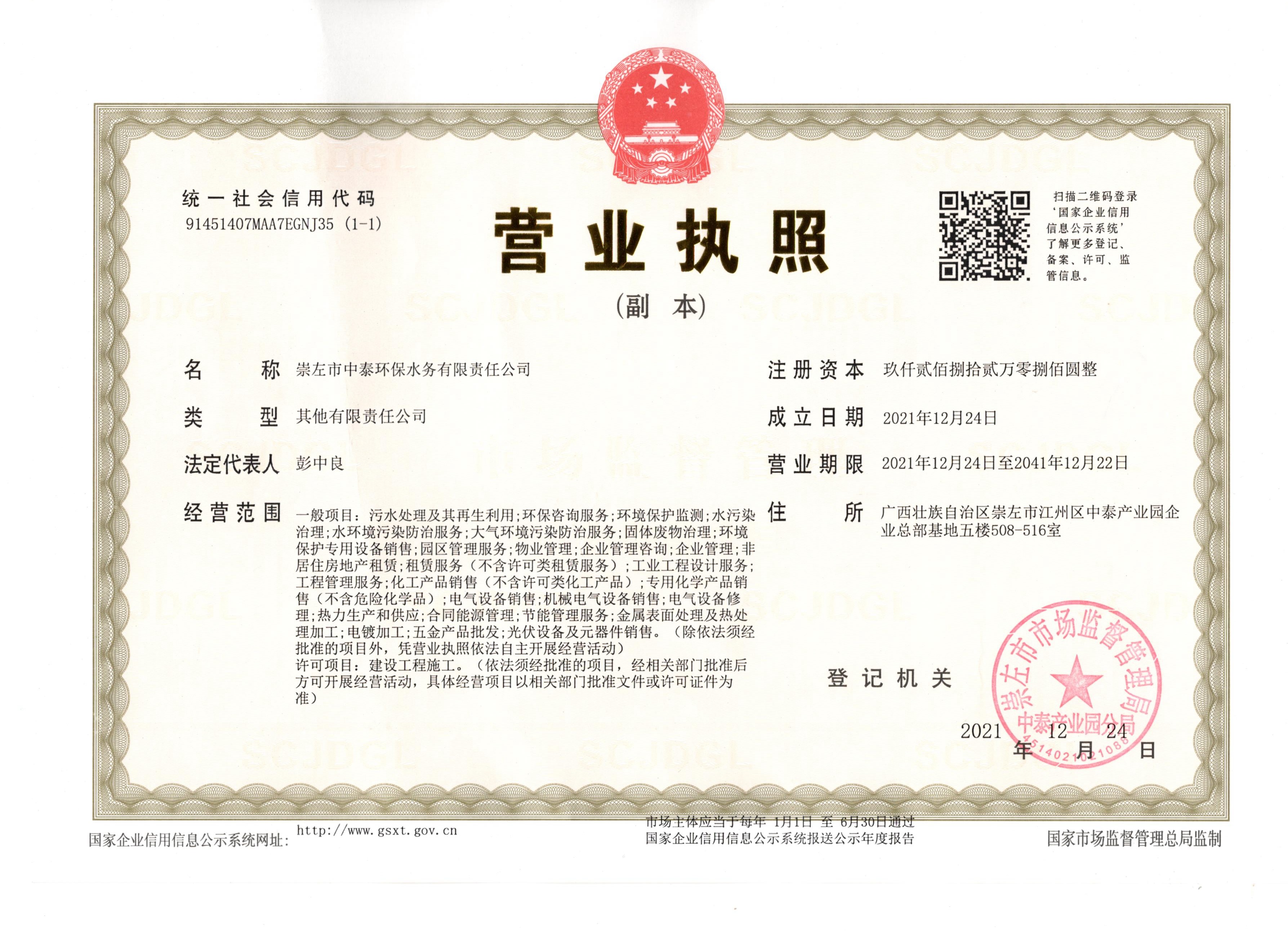 崇左市中泰环保水务有限责任公司由ATY.COM爱体育(中国大陆)科技公司与中国化学工程第四建设有限公司、浙江海拓环境技术有限公司、广西崇左市城市工业投资发展集团有限公司共同设立,注册资本金9282.08万元,其中ATY.COM爱体育(中国大陆)科技公司持股5%。经营范围包括污水处理及其再生利用、环保咨询服务、环境保护监测、水污染治理、水环境污染防治服务、大气环境污染防治服务、固体废物治理、环境保护专用设备销售、工业工程设计服务、工程管理服务、建设工程施工等业务。