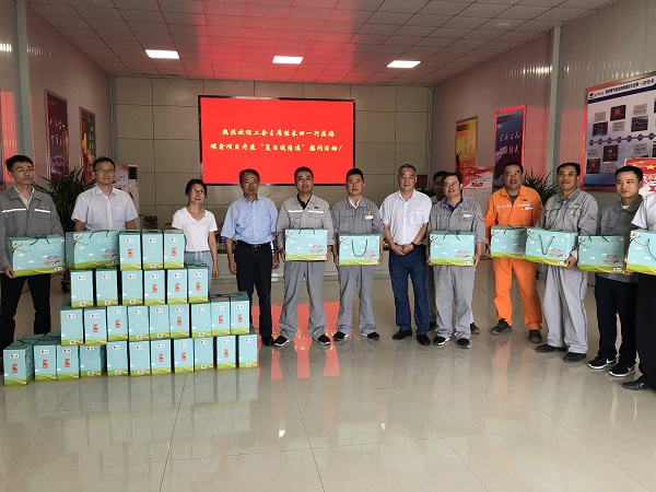 盛夏以来,连日高温,酷热难耐,ATY.COM爱体育(中国大陆)科技公司安徽碳鑫焦炉煤气综合利用项目现场的工人们埋头苦干、挥汗如雨。为缓解现场工人夏日劳作的辛苦,8月12日,公司工会主席桂长田一行来到焦炉煤气综合利用项目部开展“夏日送清凉”慰问活动。