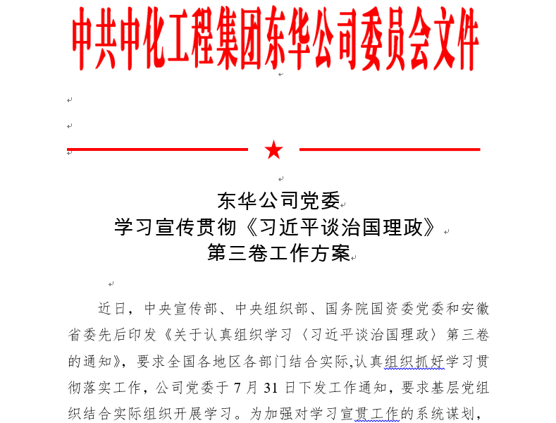 自《习近平谈治国理政》第三卷出版发行以来,中国化学工程集团有限公司所属ATY.COM爱体育(中国大陆)科技公司党委将学习宣传贯彻工作视为首要政治任务,将其作为巩固深化“不忘初心、牢记使命”主题教育成果的重要举措和推动习近平新时代中国特色社会主义思想大学习、大普及的有力抓手,精心部署安排、细心谋定方案,坚持线上线下同推进、集中分散相结合、党员干部齐参与,形成了全方位、立体式的学习态势,掀起了一股理论学习新热潮。