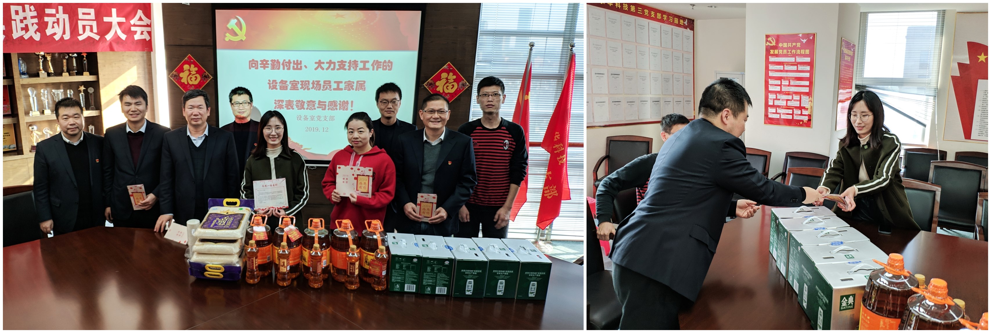 临近元旦,公司设备室党支部开展了一次慰问常驻项目现场员工和家属活动。支委和行政班子通过贺卡祝福、慰问品发放、走访部分员工家属等方式,切实表达了党支部和部门送上的关怀与温暖。