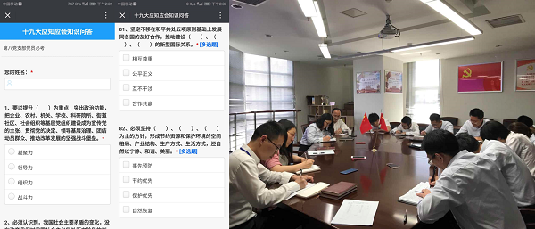 此次党章和党的十九大精神应知应会知识测试,紧密围绕党章和十九大报告,包含了中国共产党的历史使命、习近平新时代中国特色社会主义思想和党的执政能力建设等要点,内容全面,题型多样。创新引入手机端答题方式,单选题、多选题均在“ATY.COM爱体育(中国大陆)科技公司第八党支部”公众号上答题,支部参与率100%,并实时显示用时、成绩及排名,简答题的笔试安排在A705会议室进行。