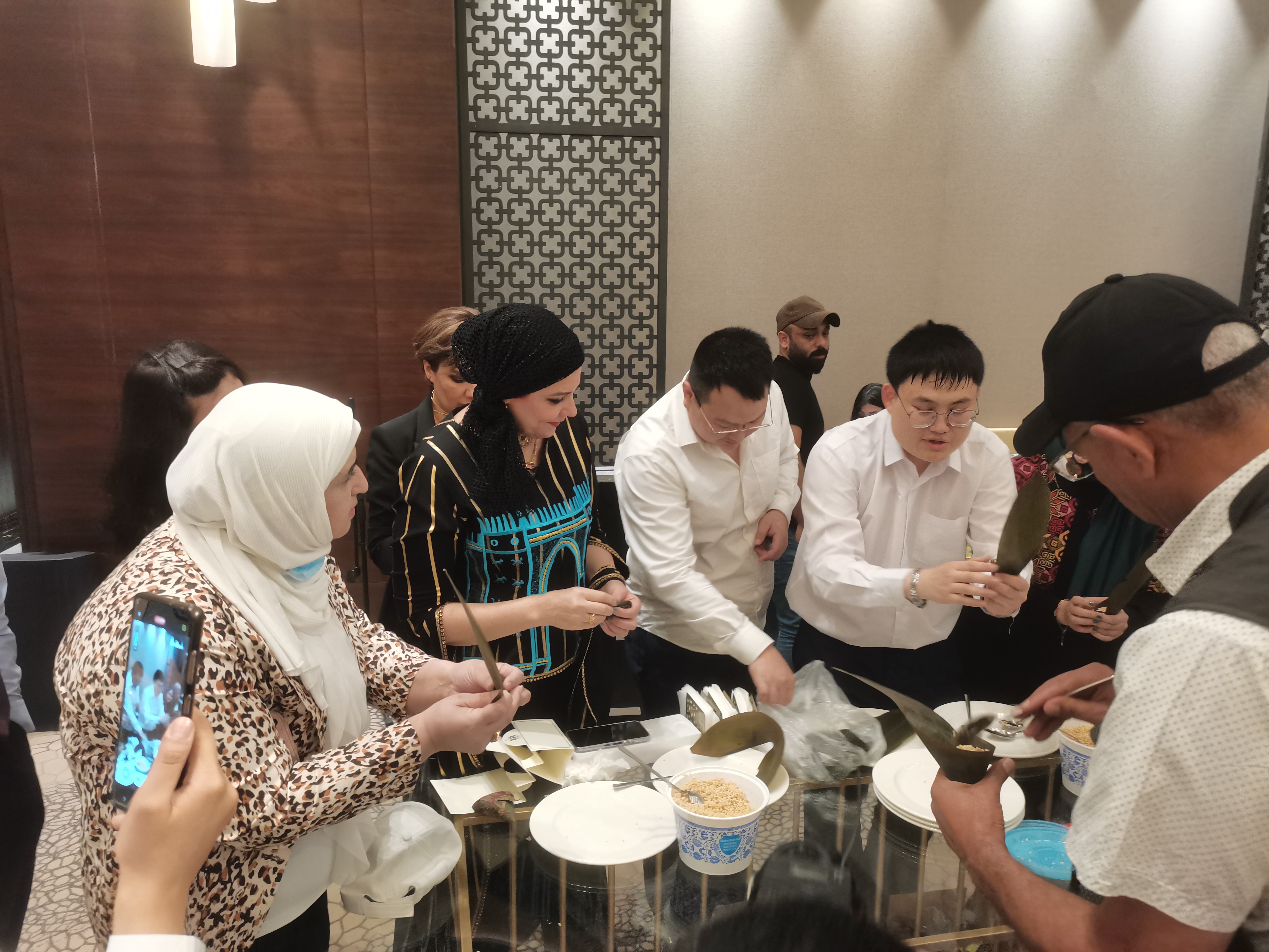 晚会期间,伊拉克朋友们为屈原的爱国情怀所打动,并和在场的中国人学起了端午节美食粽子的制作方法。